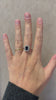 €1,250.00Bague marguerite rectangulaire en or blanc 18k sertie d'un saphir dans un entourage de diamants de tailles diverses.