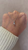 €900.00Collier en or blanc 18k à maille forçat limée orné d'un diamant rond en serti griffes surmonté par un diamant baguette.